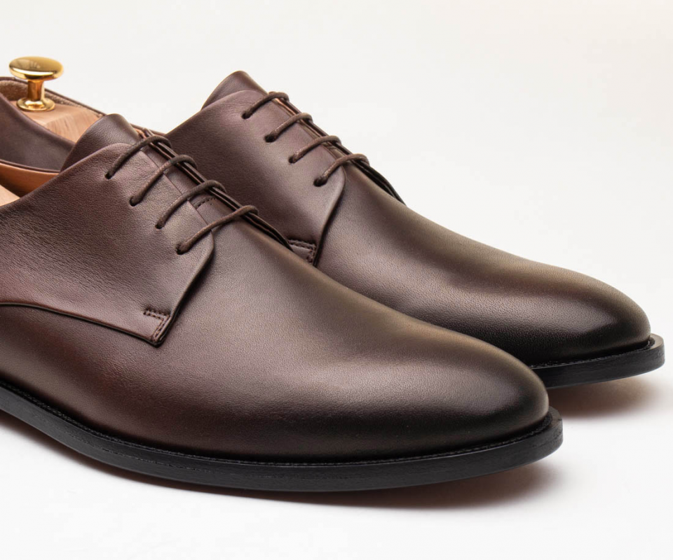 Uniwersalny model Derby wykonany z najlepszej naturalnej skóry cielęcej. Posiada naszyte na wierzch przyszwy kwatery. Wykończony podszewką z bydlęcej skóry. Buty uszyto metodą Blake, stanowią kluczowy element męskiej garderoby.